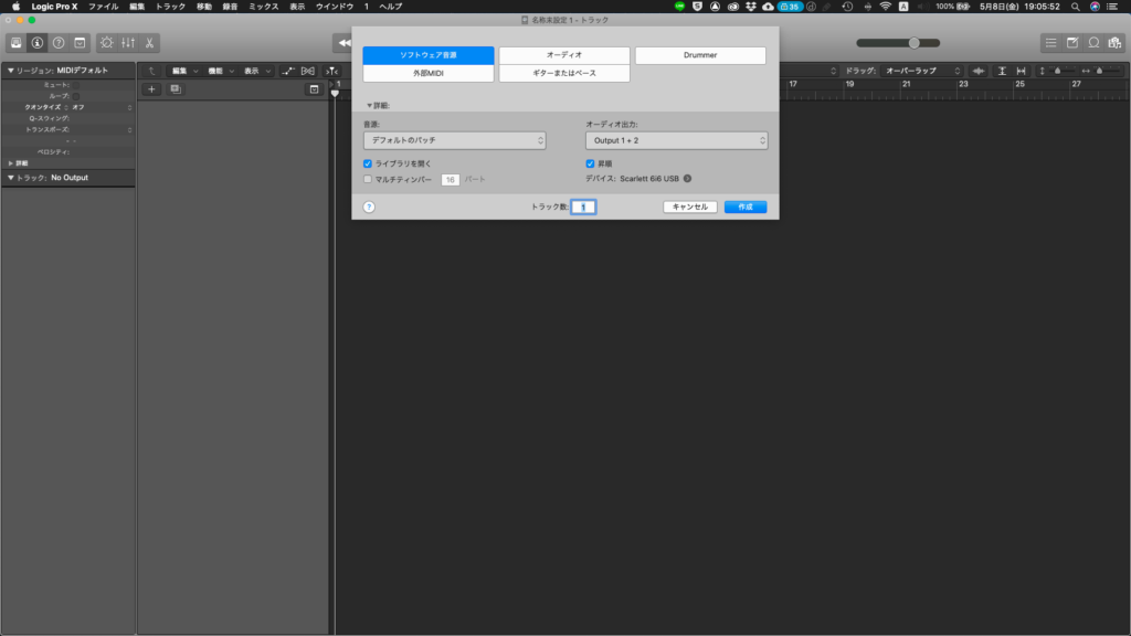 Logicは制作するスタイルを選ぶだけで、そのトラックに必要な機能を一瞬で準備してくれます。